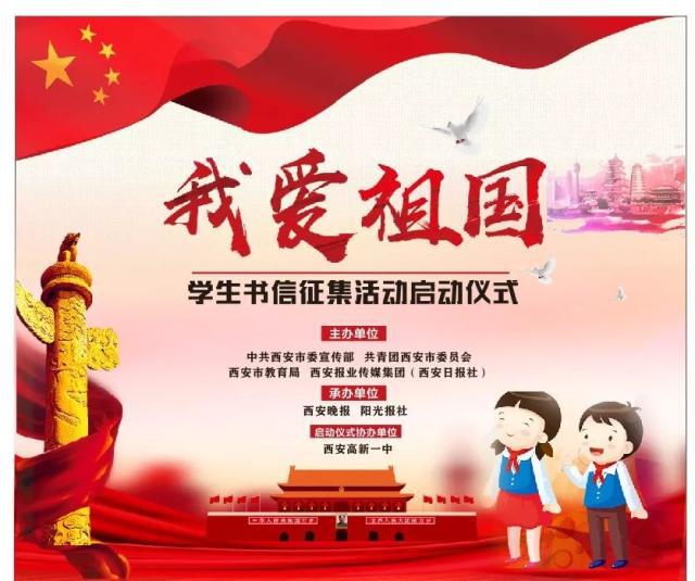 为庆祝新中国成立70周年,大力弘扬爱国主义精神,西安市委宣传部、共青团西安市委、西安市教育局、西安报业传媒集团(西安日报社),在6月决定联合主办我爱祖国学生书信征集活动。该活动是西安市迎接共和国成立70年“我和我的祖国”系列活动的重要组成部分,也是西安市中小学生今年暑假社会实践的一项重要内容。
