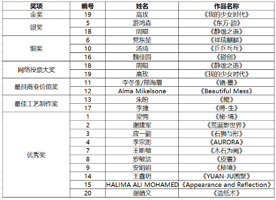 最终,19号选手高玫凭借作品《我的少女时代》夺得金奖,5号选手游鸿森、18号选手周聪夺得银奖,6号选手党东堃、10号选手汤琦、16号选手魏佳园夺得铜奖。他们将大浪时尚小镇64万元人才奖励补贴的机会揽入怀中,以此为起点,扬帆远航。