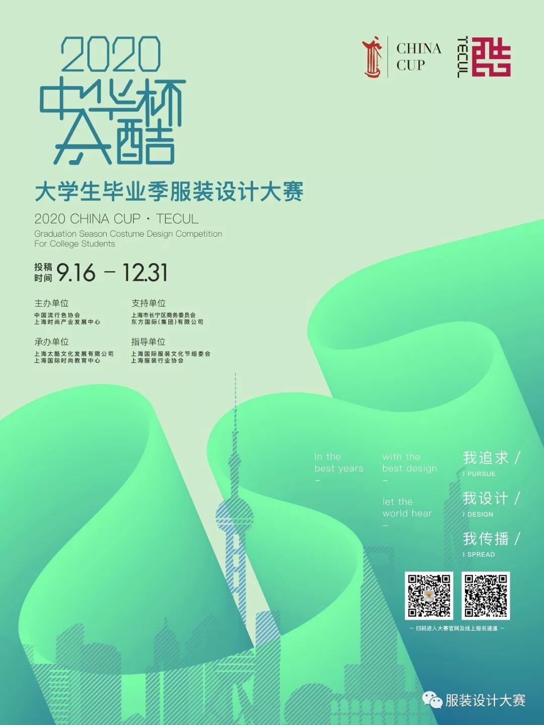 ★颁奖盛典:2020年上海时装周期间(3月底-4月初),举办2020“中华杯·太酷”大学生毕业季服装设计大赛决赛暨颁奖盛典。
