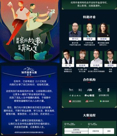 今天,知乎启动职业故事大赛第一季,以“讲述亲历故事,记录真实人生”为主题,面向全网征集真实的职业故事。参赛作品经过初步筛选、用户投票、评委评选和真实性核查后,作者不仅可以获得最高15万元的奖金,还可以通过内容版权合作的形式,获得更多的作品呈现和商业收益。优秀创作者不仅有机会开设知乎盐选专栏,还可经过推介,获得更多的图书出版、影视剧包装的机会。