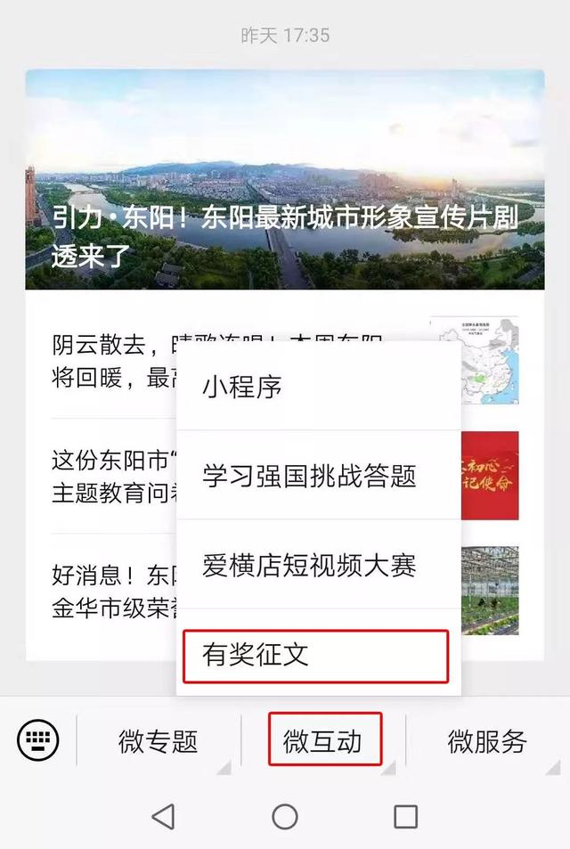 ▲菜单栏“微互动”-“有奖征文”