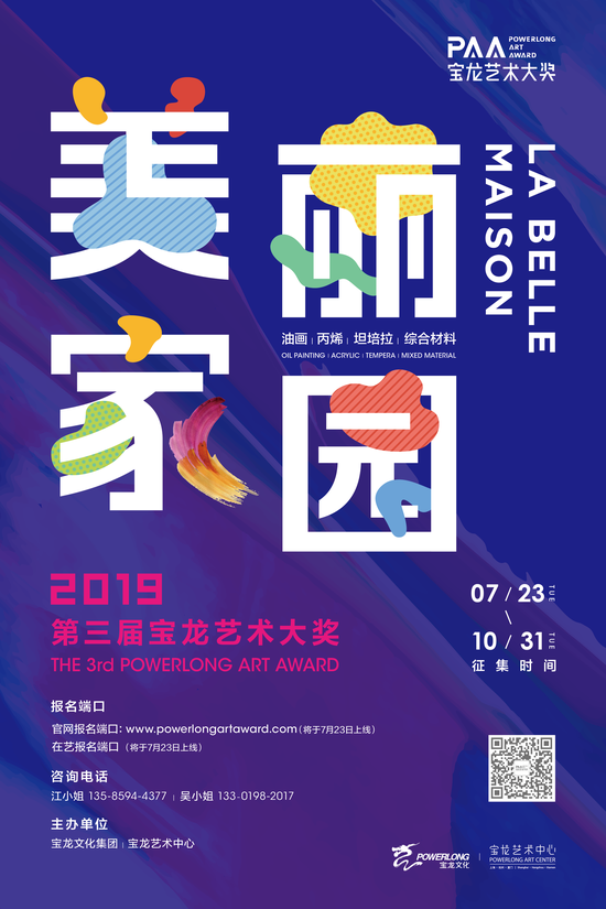 2019年7月1日“今日日本”艺术家作品征集展在日本发布征稿启事,标志第三届宝龙艺术大奖正式启动。在过去,两年间宝龙艺术大奖分别举办了以“非由述作””美丽家园”为主题的绘画征集展览,4000余名艺术家参与其中,来自不同区域的40位艺术家获得了宝龙艺术大奖奖项奖励,两届艺术大奖覆盖媒体累计200余家,在宝龙美术馆、宝龙艺术中心(上海、杭州,厦门)等宝龙文化集团旗下艺术机构已成功举办10余场系列展览,第二届宝龙艺术大奖入选作品巡展仍在继续之中。