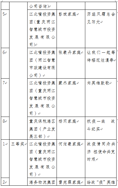 据了解,此次征文比赛获奖作品将在两江新区“三八”国际妇女节线上专题页面、“重庆两江新区”公众号和“两江姐妹”公众号进行展播。下一步,两江新区妇联还将进一步团结带领广大妇女,立足本职岗位,积极有序投入复工复产,不断增强战胜疫情的信心和复工复产积极性,共同营造同舟共济、昂扬向上、携手奋进的社会氛围,以实际行动在疫情防控和推动经济社会发展的大局中展现巾帼作为。