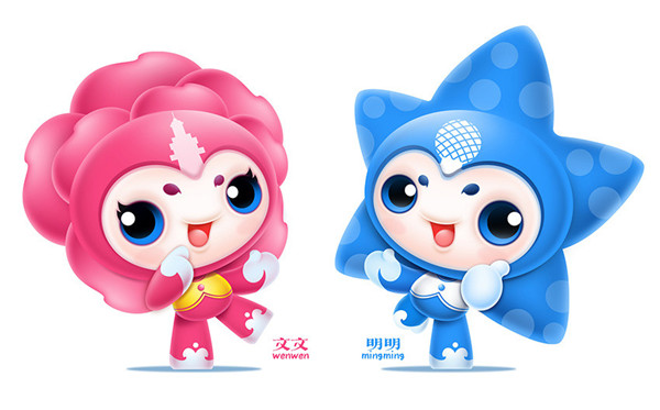 此次入选奖作品名称为“文文、明明”,分别以烟台市花“月季花”和“海星”为设计原型,融入海水、烟台山灯塔、京剧花纹、浪花等烟台特色元素,体现了海滨城市、文明烟台的地域特征。“文文”寓意“文明之光”,额头间的烟台山灯塔,作为城市之光照亮城市的璀璨文明。“明明”寓意“文明之星”,额头间的黄海明珠,与烟台美丽的海岸线交相辉映,如同一颗璀璨夺目的明珠,与灯塔相望,彰显文明建设中,仙境烟台之美誉。两个吉祥物的脚部花纹源自于烟台为“京剧之乡”的特征,经过人性化设计后,以充满自信、富有活力的形象,号召广大市民融入到文明烟台的建设中。