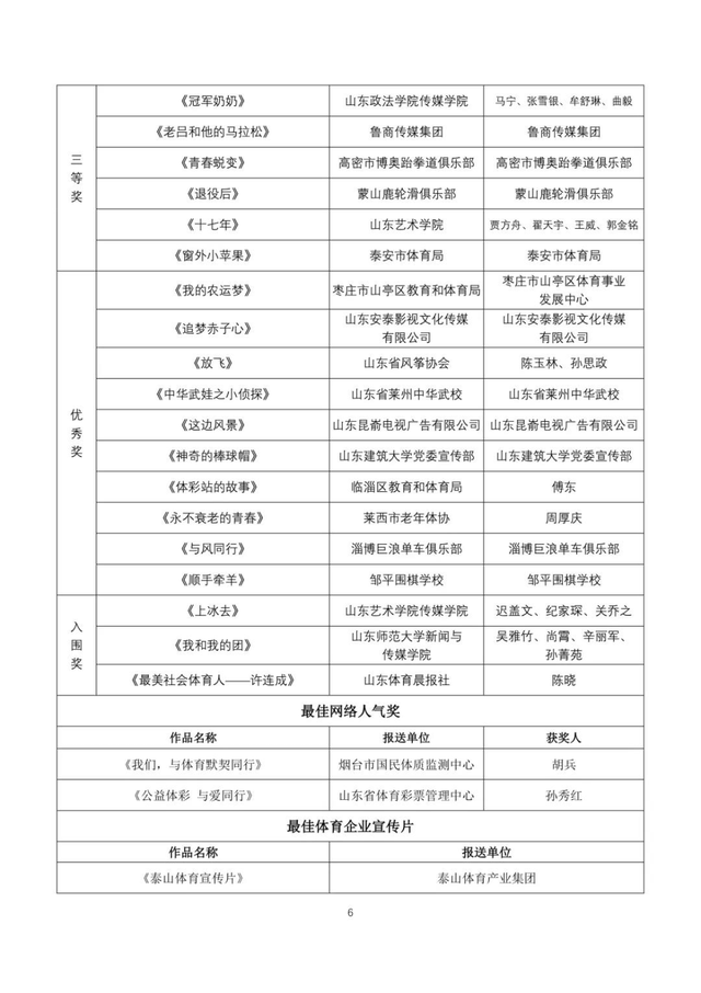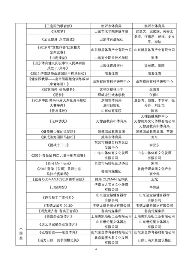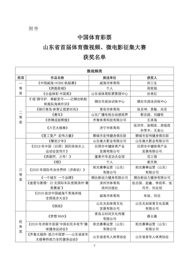 日前,经过作品征集、网络投票、专家评审、网上公示等环节,山东省首届体育微视频、微电影征集大赛获奖名单正式出炉了!