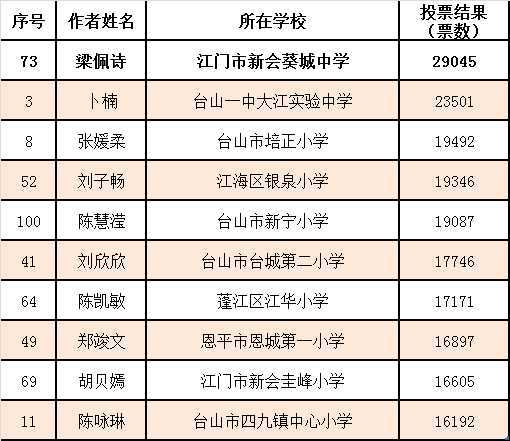 为致敬战“疫”英雄,弘扬奉献精神,营造尊医重卫良好风尚,江门市教育局与南方日报驻江门办事处联合组织开展了“给白衣战士写封信”主题征文活动,面向江门学子征集书信。各地各学校的精心组织、支持配合、积极参与。经南方日报驻江门办事处组织评审,共评选出优秀作品100份,并在此基础上开展网络投票,评出人气最高奖10份。现将各类作品评选的结果予以公布。