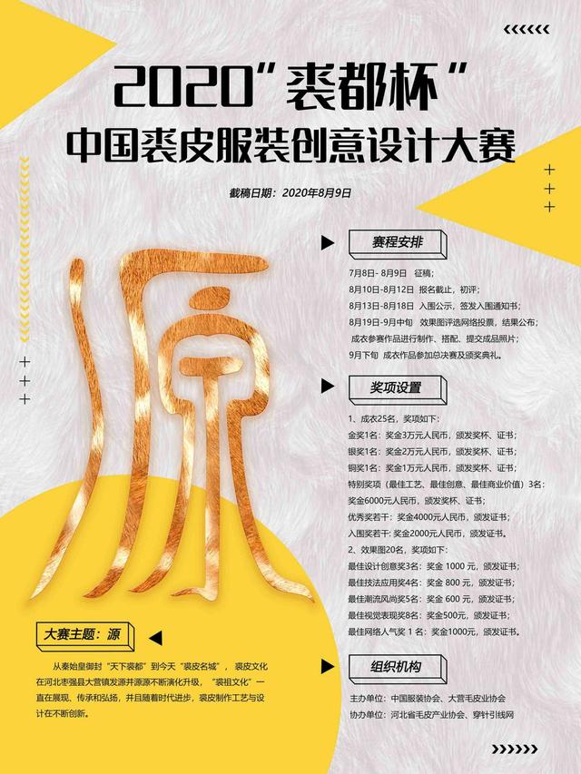 近日,由中国服装协会、大营毛皮业协会主办,河北省皮毛产业协会、穿针引线网协办,中国服饰杂志社、北京屹泰菁轩文化传媒有限公司协助策划,哥本哈根皮草提供技术支持的2020“裘都杯”中国裘皮服装创意设计大赛征稿活动正式启动。