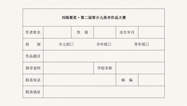 7.作品背面须贴上注明作者姓名、性别、出生年月日、作品题目、学校名称、通讯地址、邮编、联系电话、指导老师等信息的表格。(见附件表格)