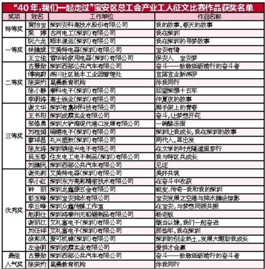 “40年,我们一起走过”宝安区总工会产业工人征文比赛评选结果公告