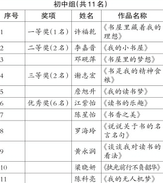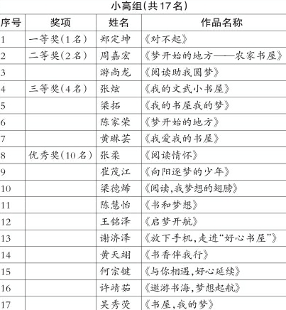 “我的书屋·我的梦”少年儿童阅读实践活动征文大赛获奖名单