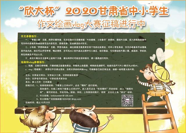 从一年级的小学生到高中生,从绘画,vlog(小视频)到作文……“欣大杯”——“幸福小康·逐梦成长”2020甘肃省中小学生作文绘画vlog大赛自9月下旬启动以来,受到了来自全省各地中小学生的广泛关注,孩子们投稿踊跃,截至10月14日,大赛已收到各类参赛作品1880多件,堪称琳琅满目。