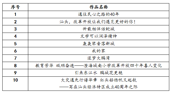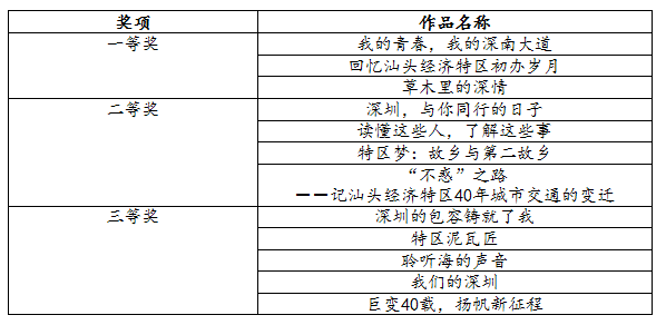 获奖作品名单公示