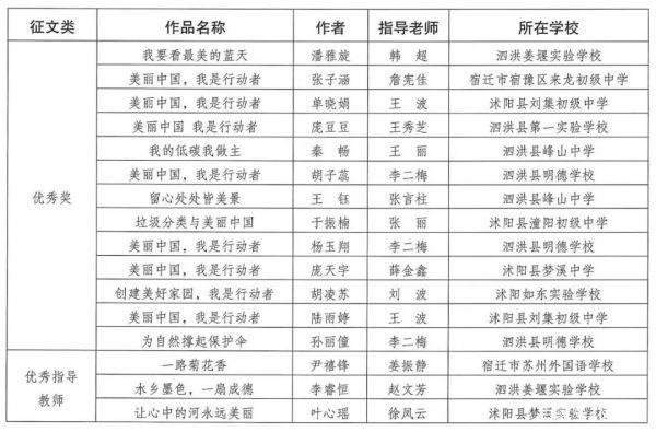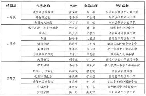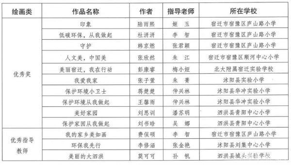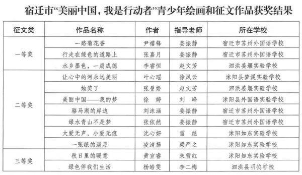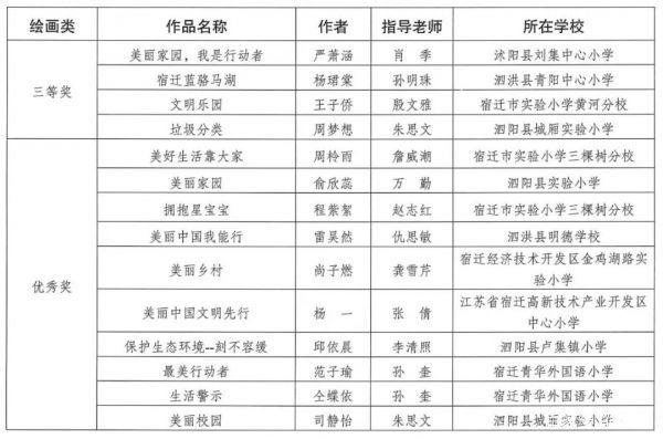宿迁市“美丽中国,我是行动者”青少年绘画和征文作品获奖结果