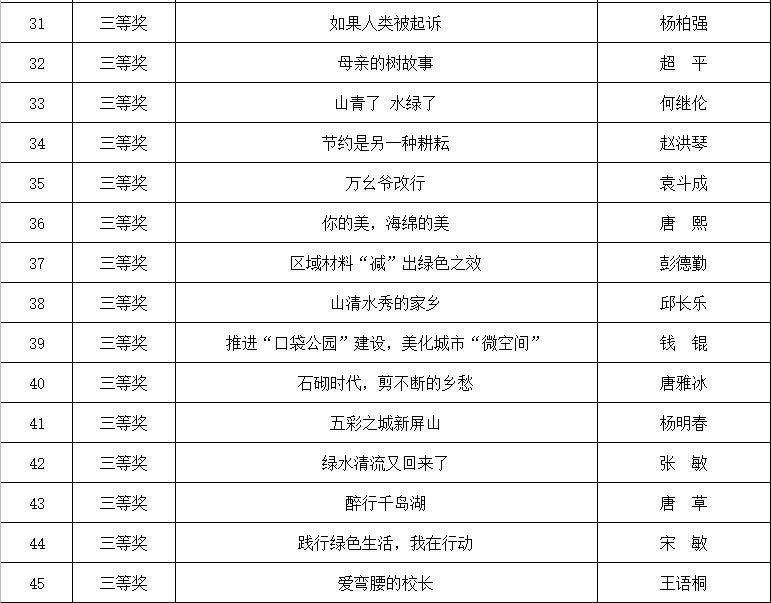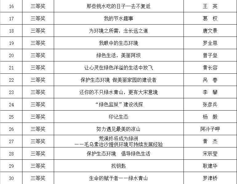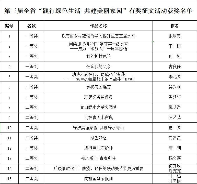 近日,第三届四川省“践行绿色生活 共建美丽家园”有奖征文活动终评会在成都召开,最终评选出获奖征文一等奖5个,二等奖10个,三等奖30个。
