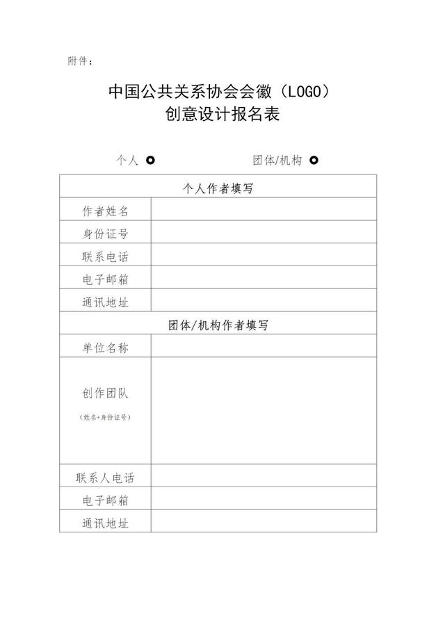 填写《中国公共关系协会会徽(LOGO)创意设计报名表》(见附件),提交签字、盖章后的电子版扫描件,并附AI和JPGE格式设计稿,分辨率不低于300dpi(像素/英寸)。需将投稿文件以压缩包形式发送至邮箱cpralogo@163.com,邮件以个人或团体/机构名称命名。