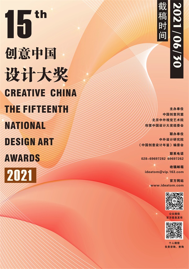 “创意中国”设计大奖自2007年启动以来,迄今已走到第十五个年头,每届大奖都代表着当前中国设计研究与创作的年度水准。作为中国创意设计界最高规格的设计奖项,其先锋性、学术性、规模性在中国设计发展史上都是史无先例的。由北京中外视觉艺术院、中国创意同盟网主办,中外设计研究院、《中国创意设计年鉴》编委会联办的第十五届“创意中国”设计大奖于2021年3月在中国成都正式启动征集。本届大奖涵盖平面、工业、环艺、服饰、综合五大设计类别,全面沟通设计产业的各个层面,旨在进一步推广新锐设计师的创意思考和设计表达,探索创意设计发展的新趋势,促进我国创意产业不断向纵深发展。