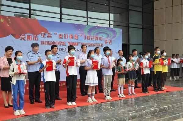 6月3日上午,安阳市禁毒委在安阳市职工文体中心举行纪念“虎门销烟”182周年暨首届中小学“禁毒杯”征文书画大赛颁奖仪式,安阳市政府副市长、禁毒委常务副主任、公安局党委书记、局长欧阳报军出席仪式并讲话。