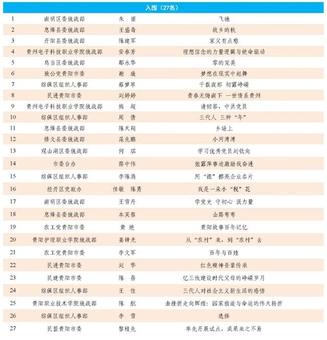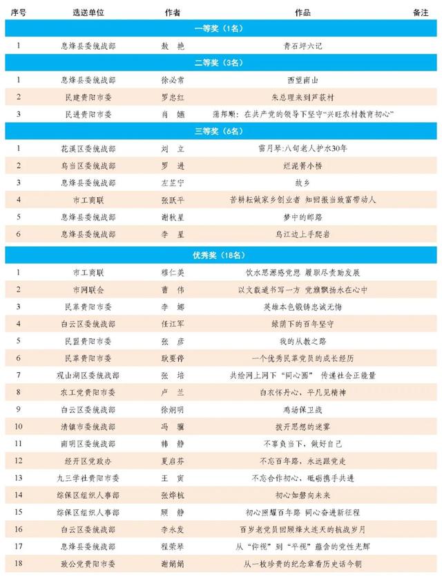贵阳市统一战线庆祝中国共产党成立100周年征文比赛获奖名单