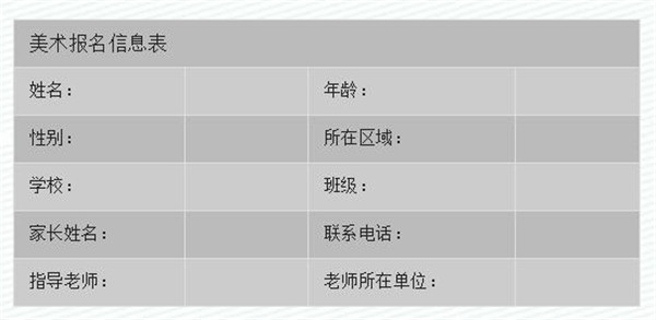 美术报名信息表