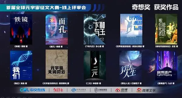 会上,科幻赛区“奇想奖”的10部获奖作品和文学赛区“开元奖”的10部获奖作品正式揭晓,两大赛区前3名作品入围百万“元宇宙奖”的最后角逐。与此同时,这20部作品也将进入本次大赛“最佳人气奖”的评选通道,最受读者欢迎的元宇宙小说将获得专属定制数字藏品,于中文在线旗下数藏平台上链发行。目前,该活动的网上投票通道已在新浪微博正式开启。