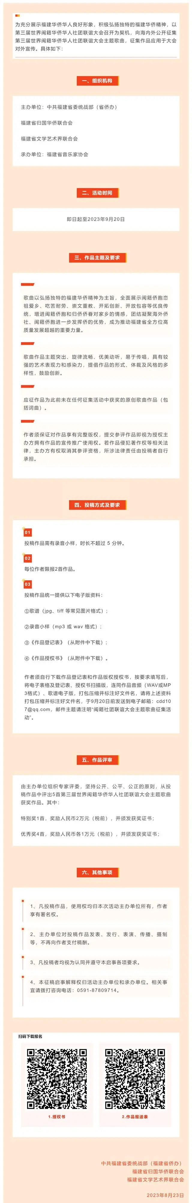 第三届世界闽籍华侨华人社团联谊大会主题歌曲征集令