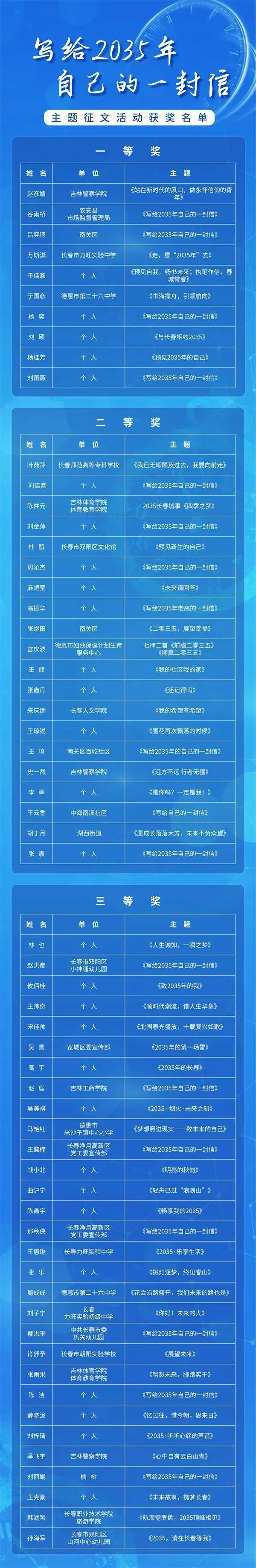 经过初评、复评和终评,活动评出一等奖10篇、二等奖20篇、三等奖30篇。现将获奖名单予以公布。此次获奖的60篇作品以海报形式通过国际在线吉林频道专题页面进行展播。