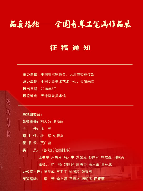 中国工笔绘画在中华民族文化精神的孕育下,历经数千年的发展已经形成了独特绘画风格,展现出中国工笔绘画艺术强大的生命力,承载着当代文化特质和文化功能的一种艺术形式。品真格物——全国青年工笔画作品展旨在积极吸收丰富的艺术营养,在传统中探寻精神的渊源,探索多样化的形式和个性化的语言。注重在创作中体现传统的韵味与格调,在社会变迁中获得持续的创作动力和源泉,以主动积极的态度展示中国当代工笔绘画艺术的发展现状。推动中国工笔画创作与延展,推出新人新作,把全国青年工笔画人才推向更高的学术平台,促进中国工笔画事业的繁荣与发展。展览相关事宜如下: