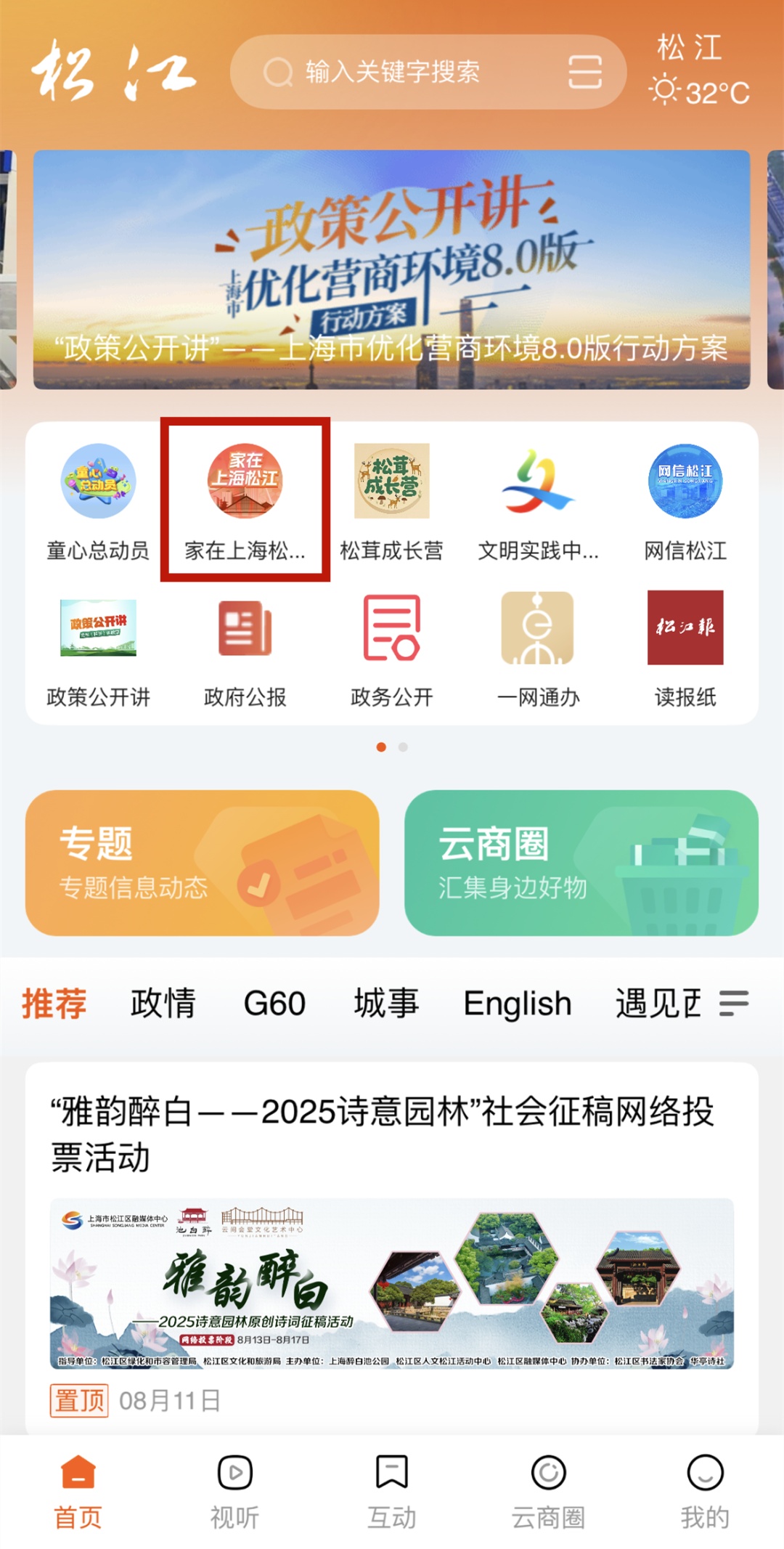 2.在客户端首页点击“家在上海松江”