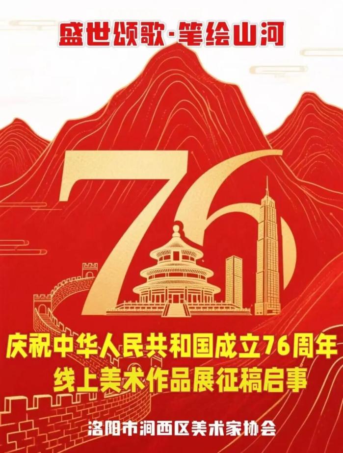 为庆祝中华人民共和国成立76 周年,弘扬中华民族优秀传统文化,激发爱国热情与艺术创造力,特举办本次国庆节书画网络展。现面向涧西区美术家协会会员、书画爱好者、中小学生等各界人士征集作品,欢迎广大书画爱好者积极参与,用笔墨丹青描绘祖国的壮丽山河,书写对祖国的美好祝福。