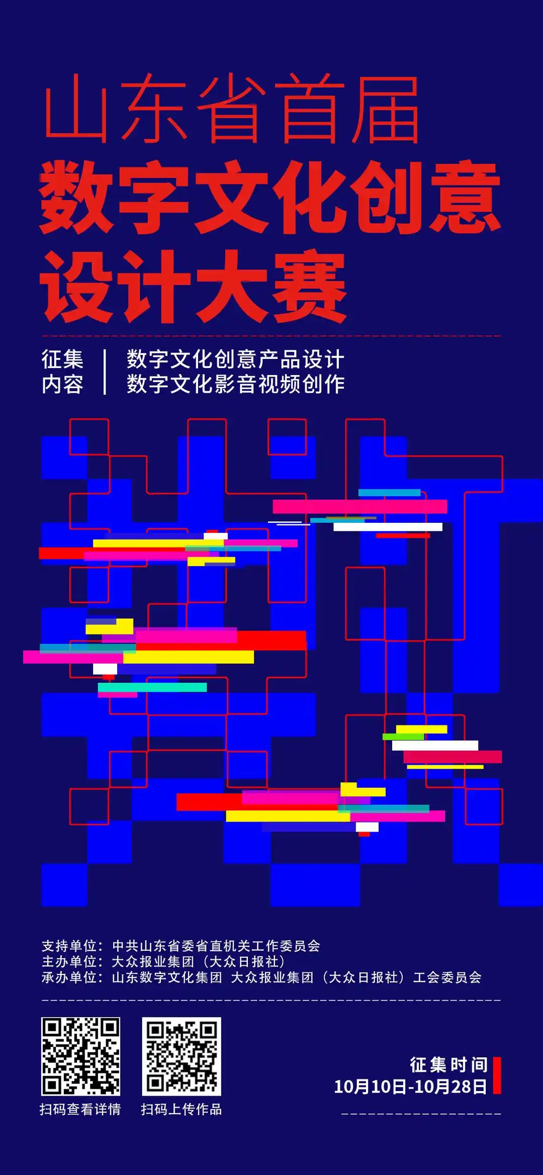 为贯彻落实国家文化数字化战略,推动山东省数字文化产业发展,激发文化创新创造活力,10月10日,由中共山东省委省直机关工作委员会支持、大众报业集团(大众日报社)主办、山东数字文化集团、大众报业集团(大众日报社)工会委员会承办的“山东省首届数字文化创意设计大赛”正式启动。本次大赛以数字文化为核心,聚焦文化创意与数字技术深度融合,打造具有山东特色的数字文化品牌,为文化强省建设注入新动能。