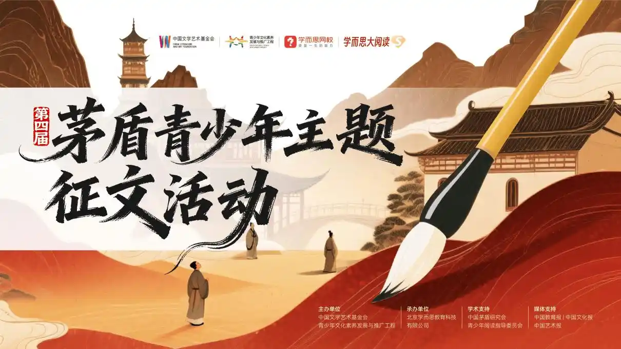 2025年9月,第四届茅盾青少年主题征文活动正式启幕。本届活动由中国文学艺术基金会、青少年文化素养发展与推广工程主办,北京学而思教育科技有限公司承办,并获中国茅盾研究会、青少年阅读指导委员会提供学术支持。中国教育报、中国文化报、中国艺术报等媒体为活动提供媒体支持。活动依托茅盾文学品牌的深厚底蕴与专业机构的权威指导,面向全国青少年文学爱好者,致力于打造高品质、有影响力的文学实践平台。作为独家承办方,学而思将充分发挥其在青少年素养教育领域的深厚积累,确保活动的专业性与广泛参与度,让广大热爱写作的青少年获得展示才华、交流思想、提升文学素养的宝贵机会,共同寻觅新时代的“茅盾文学少年”。