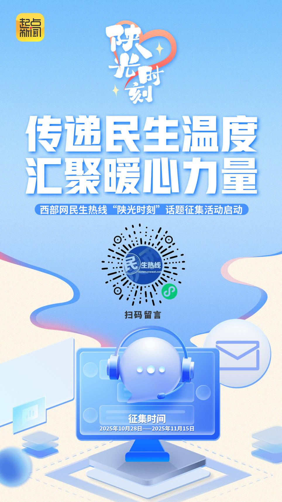 为进一步走好网上群众路线,传递民生服务中的正能量,让每一份暖心瞬间被看见、被铭记,西部网民生热线特此启动“陕光时刻”话题征集活动。现面向广大网民,征集栏目服务群众过程中的暖心作品——无论是定格感动的正能量图片、记录真情的短视频,还是饱含认可的评论反馈与点赞寄语,都可成为传递民生温度的载体。