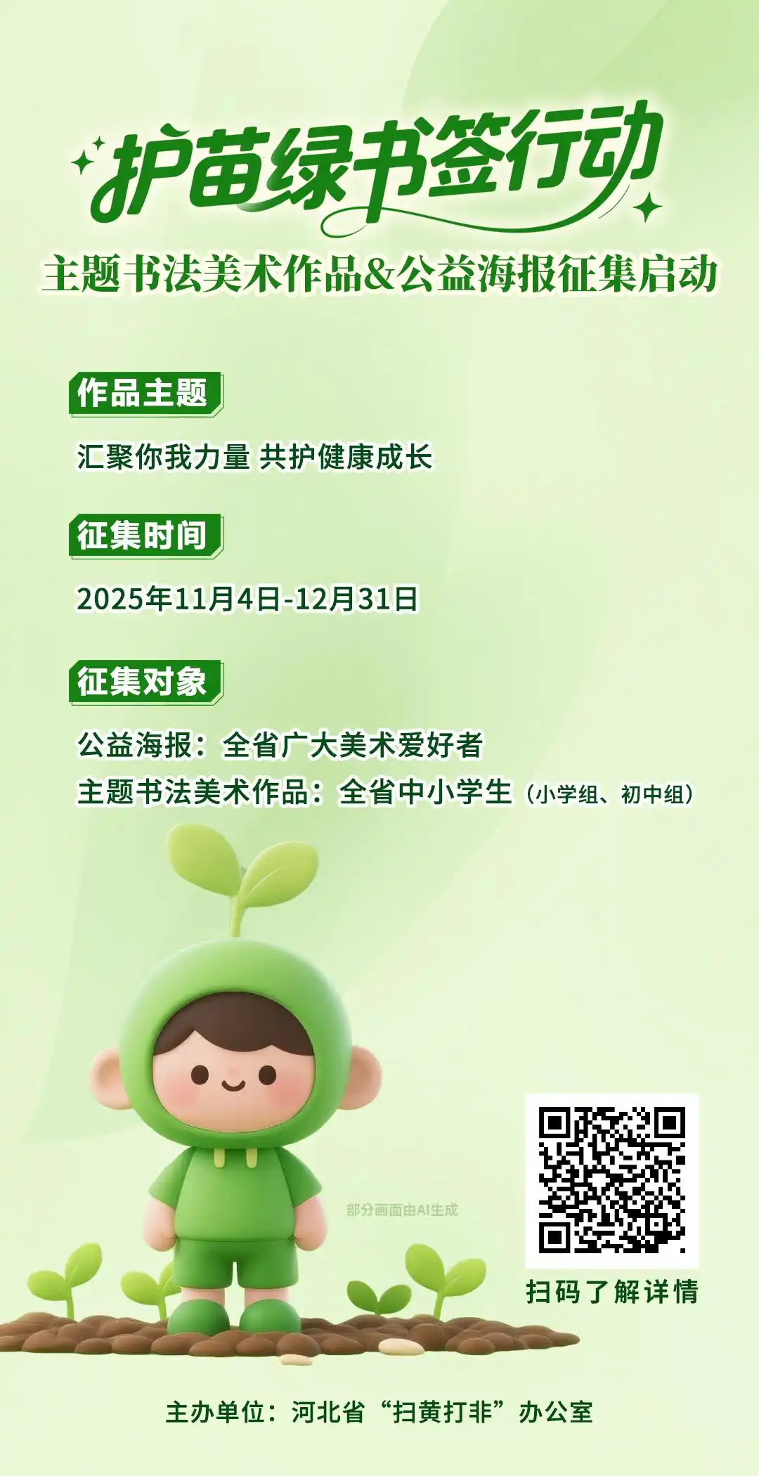 评选出的部分获奖作品将成为河北省2026年“护苗·绿书签行动”宣传海报,同时推荐参与全国优秀海报评选。