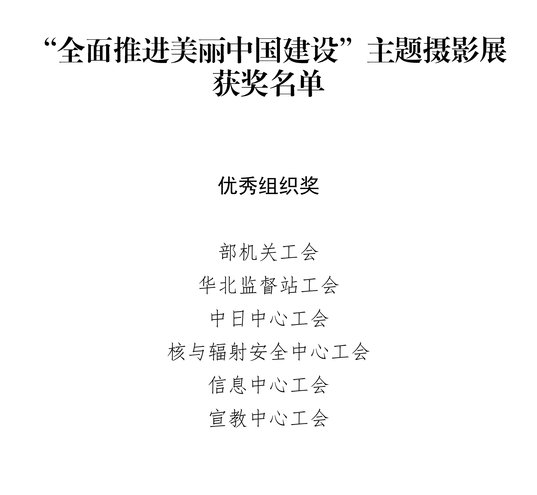 “全面推进美丽中国建设”主题摄影展活动开展以来,各部门各单位积极响应、热情参与,共征集22个部门和单位推荐的380幅(组)摄影作品。广大干部职工用一幅幅摄影作品生动记录了祖国的壮美河山、全面推进美丽中国建设的进程,用摄影语言讲述生态环保人守初心、担使命的奋进故事。经评审,评选出一等奖10个、二等奖15个、三等奖30个和优秀奖50个,优秀组织奖6个。