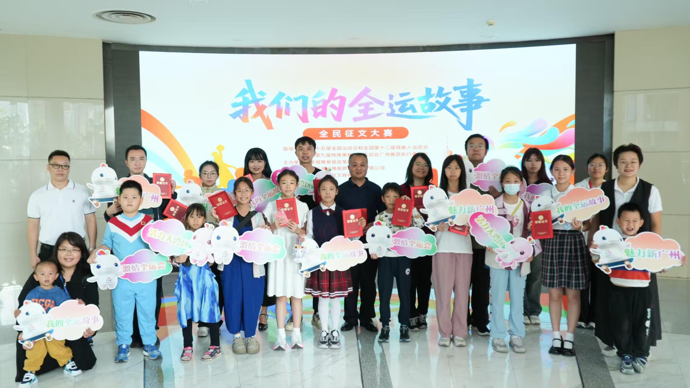 11月8日,在第十五届全国运动会开幕之际,“我们的全运故事” 全民征文大赛颁奖礼在广州羊城创意园成功举办。本次大赛由十五运和残特奥会广州赛区执委会指导,羊城晚报报业集团主办,积极响应“体育强国”的号召,以“我们的全运故事”为主题,面向全社会征集文稿。以文字为桥,串联起全民与全运的深厚联结,让体育精神在笔墨间传承绽放。