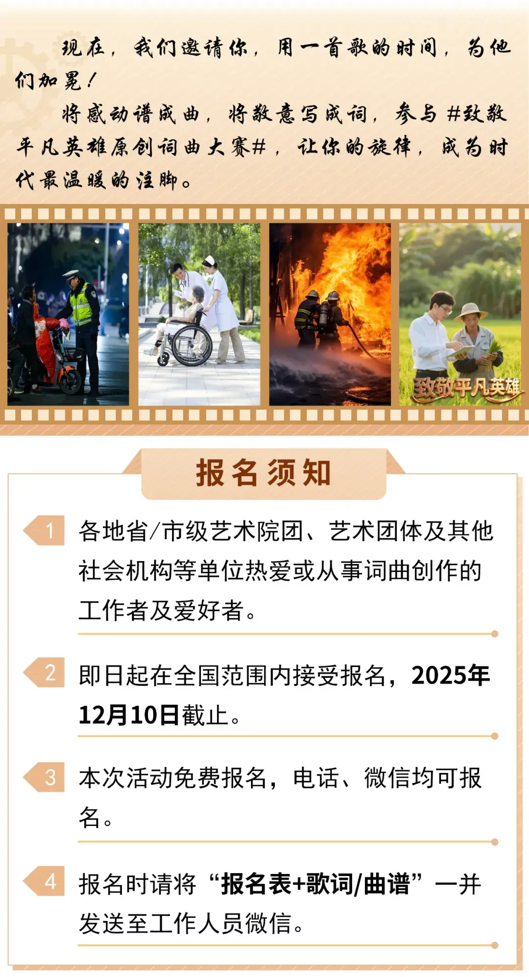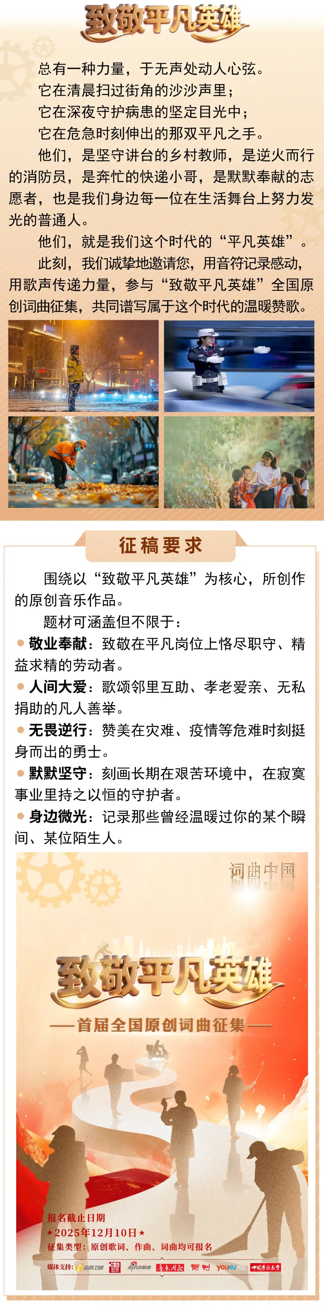 “致敬平凡英雄”原创词曲征集令