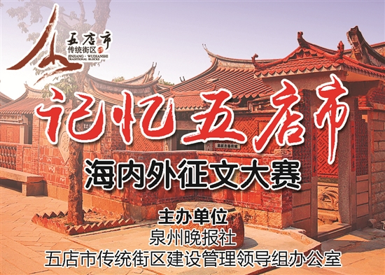 在成功举办“乙未年海内外五店市人文笔会”“‘五店市的故事’海内外征文大赛”的基础上,由泉州晚报社、五店市传统街区建设管理领导组办公室主办、日前揭晓的“‘记忆五店市’海内外征文大赛”同样佳作迭出,有16篇作品从350多件来自海内外的应征稿件中脱颖而出,其中一、二、三等奖获奖作者分别获颁奖金3000元、2000元、1000元。