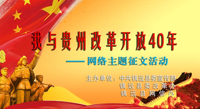 2018年是改革开放40周年。为深入贯彻落实党的十九大精神和习近平总书记在贵州省代表团重要讲话精神,全面回顺和深入总结、思考贵州改革开放取得的经验成就,今由县委宣传部、县委改革办、县网信办组织开展“我与贵州改革开放40年”网络主题征文活动。