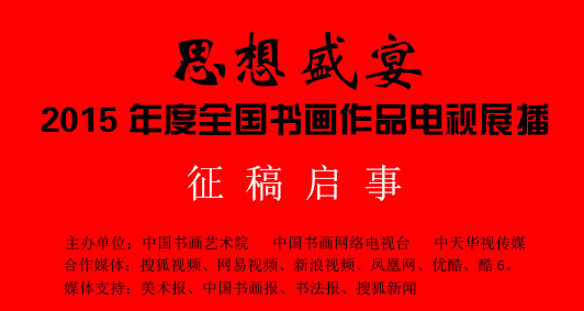 为贯彻党的十八大三中全会精神,文化惠民,掀起群众文化新热潮,中天华视传媒、中国书画网络电视台、中国书画艺术院将联合举办“思想盛宴”2015年度全国书画作品电视展播及2015年度“全国书画百家”网络公开评选。现面向全国广大书画艺术工作者公开征集,具体细则如下: