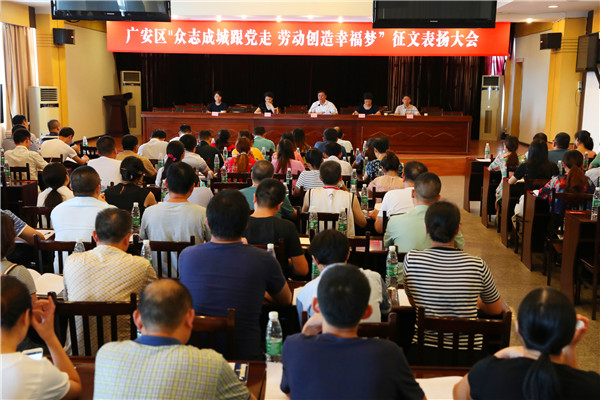 9月4日,广安区举行“众志成城跟党走 劳动创造幸福梦”主题征文表扬大会,对22名优秀作者进行公开表彰。