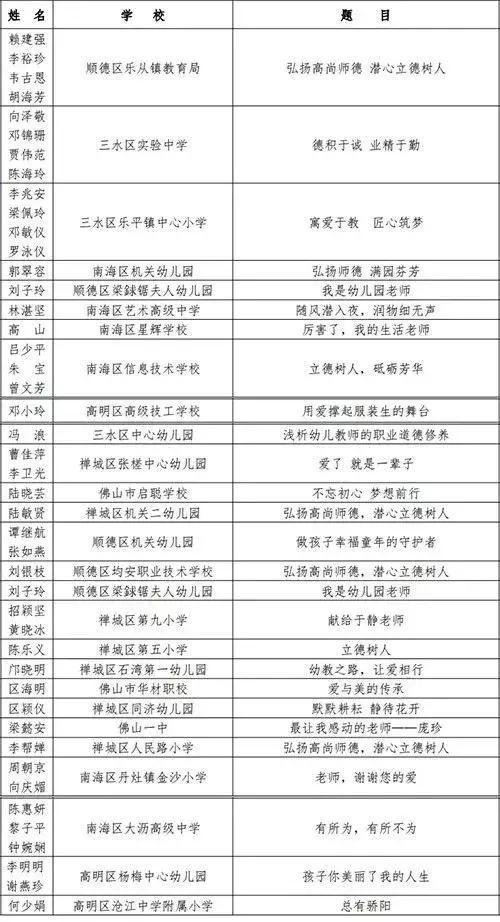 近日,佛山市局组织开展了“弘扬高尚师德,潜心立德树人”师德征文及微视频征集活动,最终经各区和各市直学校、市属幼儿园逐级遴选推荐,共评出师德征文获奖文章228篇。