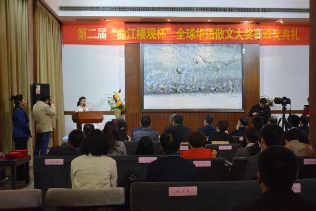 10月13日上午,第二届“曲江楼观杯”全球华语散文大奖赛颁奖典礼在终南山古楼观景区道家文化研究院顺利举行,楼观道文化展示区管理办、曲江楼观景区、陕西省文联、东方散文杂志社、陕西散文学会等相关领导及获奖人员一行四十余人共同出席了颁奖典礼。