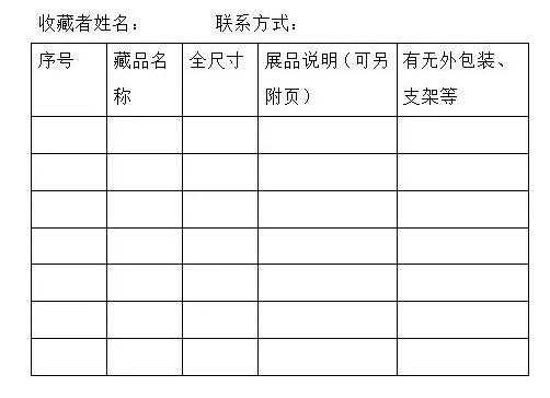 请有意向的市民或社会团体填写展品信息登记表,报送至市园文局文物处。联系人:杭州市园林文物局文物处王敏;联系电话:81719545。邮箱:369786900@qq.com