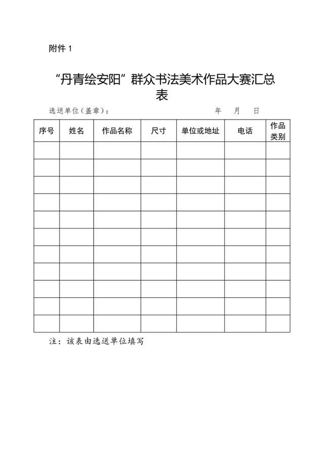 1.“丹青绘安阳”群众书法美术作品大赛汇总表