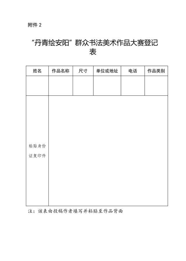 2.“丹青绘安阳”群众书法美术作品大赛登记表