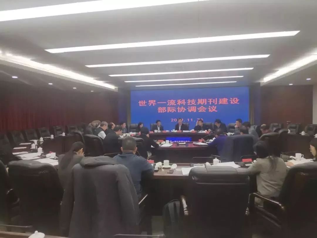 2019年11月26日,世界一流科技期刊建设部际协调会议在中国科技会堂召开。会议由中国科协党组书记、常务副主席、书记处第一书记怀进鹏主持。中国工程院副院长王辰,中国科协党组成员、书记处书记宋军,中国科学院副秘书长汪克强,以及中宣部、教育部、科技部、财政部等世界一流科技期刊建设部际协调会议成员单位代表出席会议。