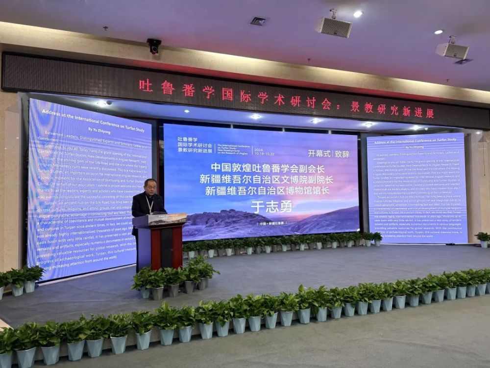 新疆维吾尔自治区文物局党组成员、副局长党志豪在致辞中表示,此次研讨会的召开,是吐鲁番学发展历程中的一件大事,也是国际景教学术交流的一次盛会,希望各位专家学者能够充分利用这次研讨会的机会,深入交流、广泛探讨,共同为吐鲁番学的发展贡献智慧和力量。