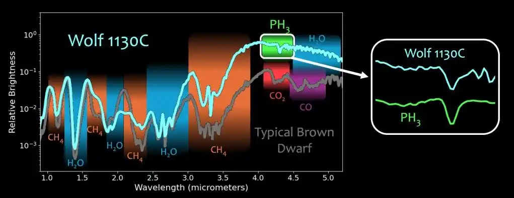 张曾华介绍,地球上的磷化氢一般通过有机物腐烂及部分工业活动产生。“在Wolf 1130C之前,我们一直未能在太阳系外天体上发现磷化氢的踪迹。”他告诉记者,此次由加州大学圣迭戈分校亚当·伯加瑟教授牵头的国际团队,利用詹姆斯·韦布空间望远镜观测了一个距地球54光年的“三体”星系,Wolf 1130C是该星系中的褐矮星,它还有两个邻居,分别是一颗红矮星和一颗白矮星。