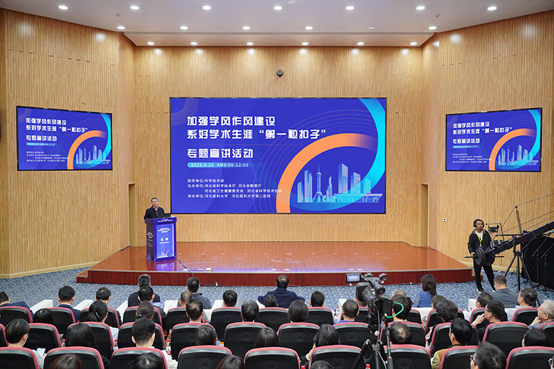 9月25日,由科技部十司指导,河北省科技厅、省教育厅、省卫生健康委、省科协联合主办的“加强学风作风建设系好学术生涯‘第一粒扣子’”专题宣讲活动在石家庄成功举办。活动主会场设在河北医科大学,采用“1+10+1”模式,即1个主会场、10个分会场及线上平台同步进行,覆盖高校院所、医疗卫生机构及科技学会、协会科研人员、管理人员以及新入学博士、硕士研究生等近16万人。科技部十司有关同志,河北省科技厅、河北医科大学负责同志出席并致辞,中国工程院院士丛斌、中国科学技术信息研究所科学计量与评价研究中心副主任杨代庆应邀作专题讲座。