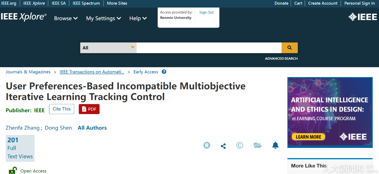 近日,数学学院沈栋教授作为通讯作者合作完成的论文《User Preferences-Based Incompatible Multiobjective Iterative Learning Tracking Control》被自动控制领域顶级期刊《IEEE Transactions on Automatic Control》接收为长文(Full Paper)发表。论文第一作者为数学学院博士生张振法。本研究针对基于用户偏好的不相容多目标跟踪问题创新性地提出了两种算法(IS-PMGDA和IS-SMGDA)来快速且精准地收敛到满足用户偏好的Pareto最优解,该算法也可以迁移应用到多目标优化以及多任务学习等领域。